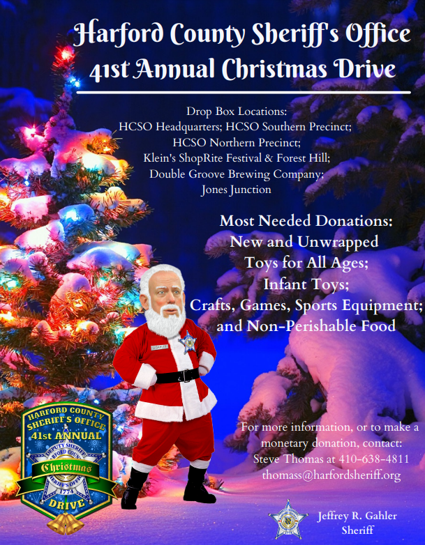 For more information, or to make a monetary donation, contact: Steve Thomas at 410-638-4811 thomass@harfordsheriff.org